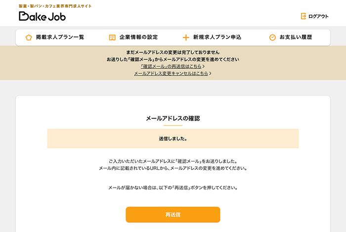 ③メールアドレス変更後に【確認メールを送信】をクリック