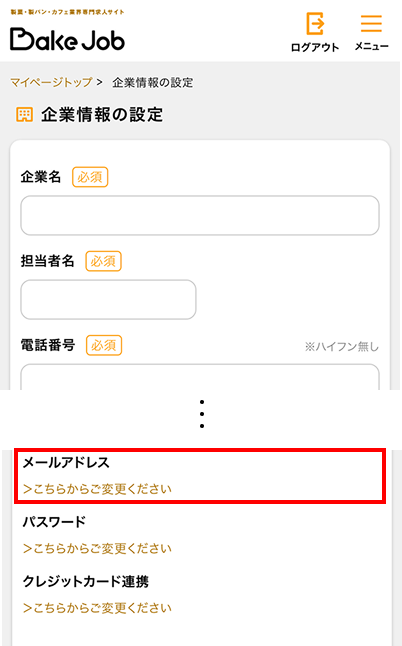 ③企業情報の設定の下部【メールアドレス】の【こちらからご変更ください】をタップ