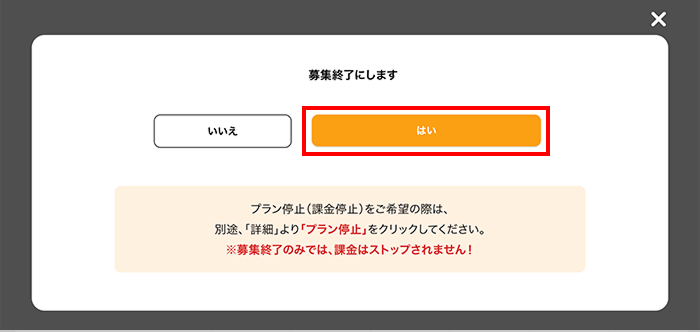 ②募集終了にします→【はい】をクリック