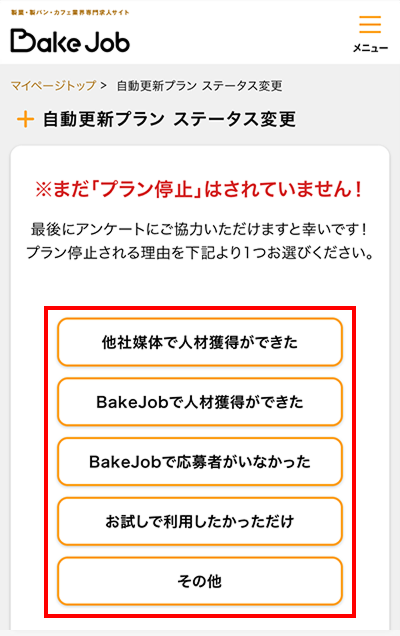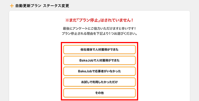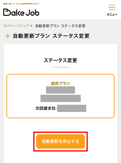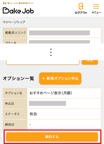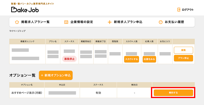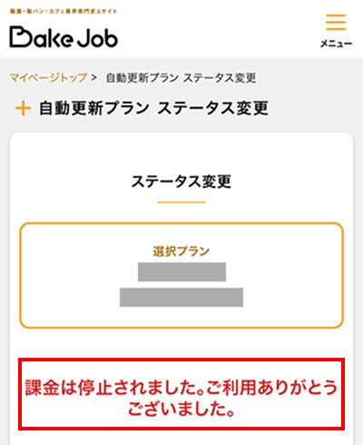 ご掲載中のプラン(課金)の停止をします。