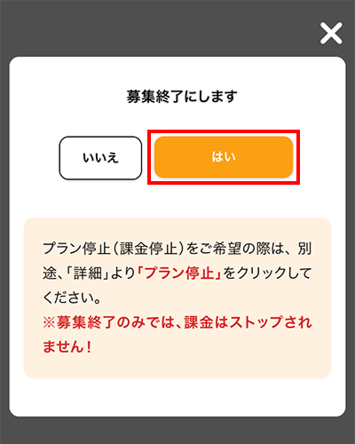 ②募集終了にします→【はい】をタップ