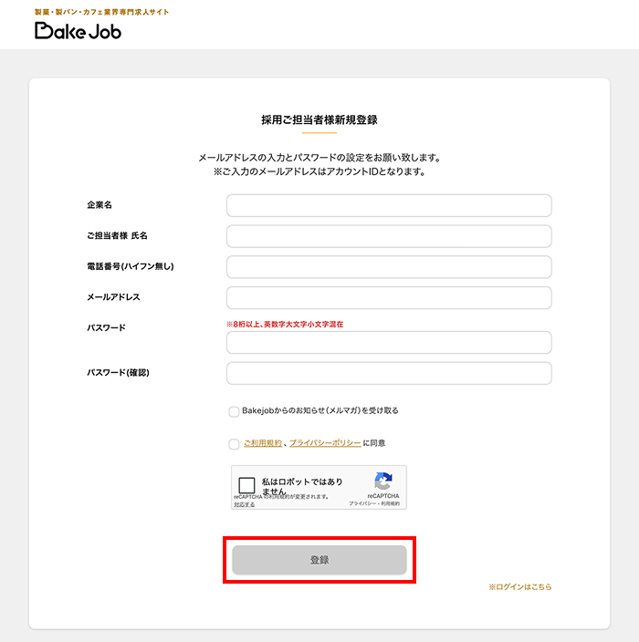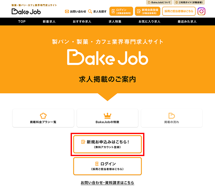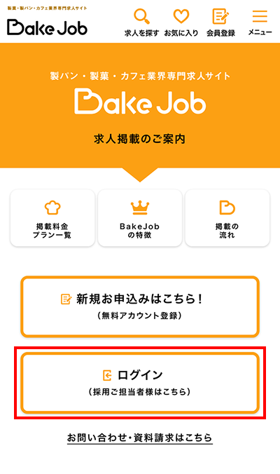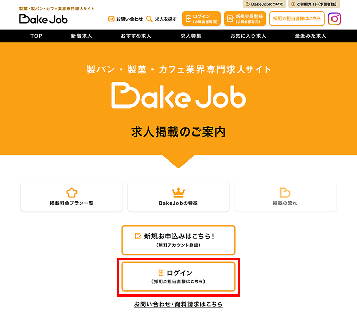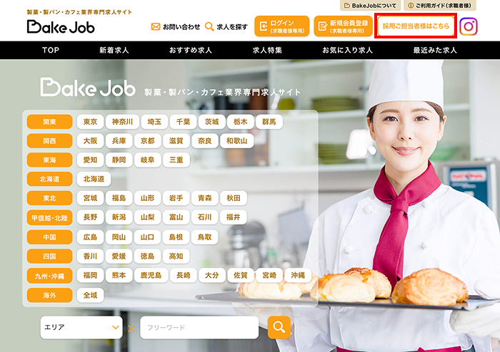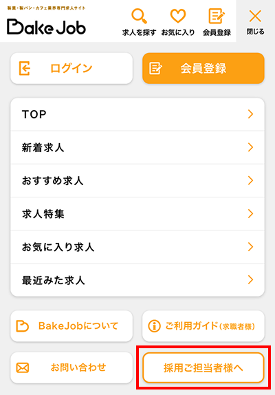 ①サイトTOP右上【採用ご担当者はこちら】をクリック