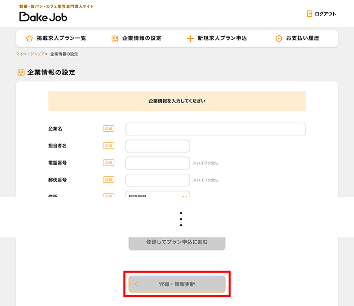 ⑦企業情報を入力し【登録してプラン申込に進む】