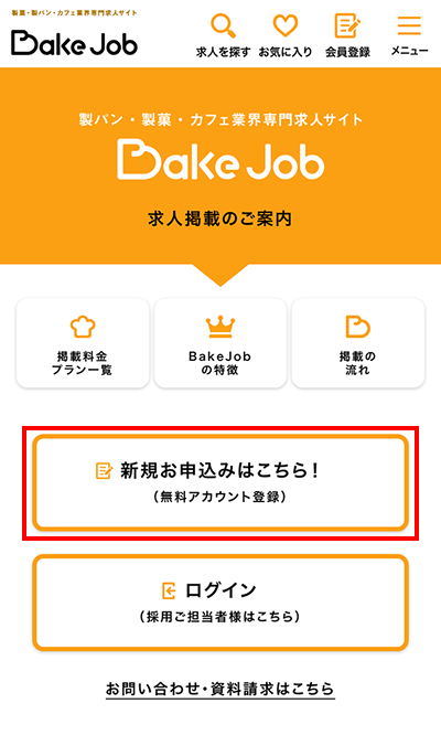 ②【新規お申込みはこちら(無料アカウント登録)】をクリック