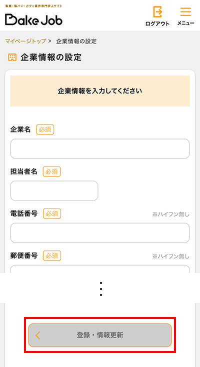 ⑧企業情報を入力し 【登録・情報更新】を選択